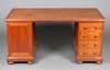 958 | L M Emedmon Calcutta, an Indian hardwood kneehole desk with writing surface to the centre, 1 pedestal fitted 4 drawers, the other fitted a cupboard, raised on bun feet 75cm h x 165cm w x 81cm d | 150-200 |