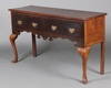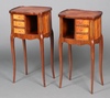 902 | A pair of 20th Century quarter veneered and crossbanded Kingswood tables of serpentine outline, fitted a recess and 3 drawers, raised on cabriole supports 74cm h x 39cm w x 30cm d | 200-300 |