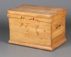 911 | A 19th Century pine trunk with hinged lid and original iron hinges, brass drop handles to the side, raised on a platform base 58cm h x 81cm w x 50cm d | 70-90 |