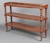916 | A Victorian oak 3 tier buffet with raised back, with spiral turned supports, raised on brass caps and casters 110cm h x 162cm w x 38cm d | 100-150 |