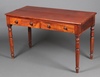 919 | A Victorian mahogany writing table fitted 2 drawers, raised on turned supports 73cm h x 123cm w x 61cm d | 60-80 |