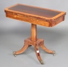 920 | A Regency rosewood and crossdbanded satinwood D shaped card table, raised on a chamfered column, triform base and splayed feet with brass caps and casters 75cm h x 89cm w x 43cm d | 120-150 |