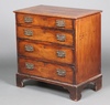922 | A Georgian mahogany and oak lined chest of 4 long drawers with later replacement brass drop handles, raised on bracket feet 82cm h x 88cm w x 46cm d | 80-120 |