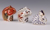 647 | A Royal Crown Derby Imari pattern paperweight in the form of a rabbit, base with gold stopper LV 7cm, together with a squirrel LIV 8cm and red squirrel LXI both with silver stoppers 9cm, all boxed | 50-70 |
