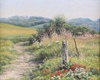 777 | **Mervyn Goode (b.1948), "High Summer Downs", oil on canvas, signed recto, titled and dated 1987 verso, 18.5cm x 23.5cm, within a hessian and silvered frame ** Please note - Artists Re-sale Rights may be payable on this lot | 70-90 |