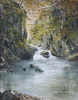 781 | Gwyneth Tomos, River Landscape with Waterfall, 20th century oil on canvas, signed, 49cm x 39cm, within a hessian and painted wood frame. | 50-75 |