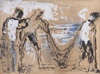 787 | **Pericles Byzantios (Greek, 1893-1972), Fishermen Carrying a Net, watercolour with gouache, signed with initials and dated 1966, 34cm x 46cm, within an ebonized frame, **Please Note - Artists Resale Rights may be payable on this lot | 150-200 |
