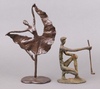 483 | A 20th Century bronze figure of a standing ballet dancer 27cm and 1 other of a kneeling golfer 14cm | 40-50 |