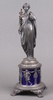 476 | A WMF figure depicting The Goddess of Medicine, raised on a pierced cylindrical base with blue glass liner decorated figures of warriors, the base marked MB, 34cm h | 100-150 |