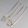 431 | Two Turkish swords with 72cm curved blades, the gilt grips with crescents and stars, complete with scabbards, 1 has signature to the blade, the other has a plain blade | 80-120 |