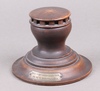 437 | A circular turned mahogany capstan inkwell in the form of a capstan, marked Made from timber of HMS Britannia 10cm x 13cm | 40-60 |