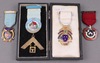 444 | Masonic, a silver gilt and enamelled Past Masters jewel Chenham Lodge no.5401 together with a silver gilt Charity jewel, 61.2 grams including ribbons together with 2 gilt metal charity jewels | 40-50 |