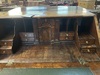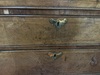 A Queen Anne walnut and crossbanded bureau, the fall front revealing a well fitted stepped interior with cupboard, pigeon holes, secret drawer and drawers above 3 short and 3 long drawers, raised on bracket feet 104cm h x 88cm w x 50cm d