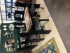 A set of 9 19th Century mahogany bar back dining chairs with X framed backs, leather overstuffed seats, raised on turned supports - 2 carvers, 7 standard