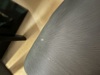 Kesterport, a contemporary black lacquered and golden speckled dining suite comprising rectangular dining table raised on a V shaped support with 2 extra leaves 77cm h x 110cm w x 183cm l x 269cm long when extended, together with 10 stick and rail high backed dining chairs and matching sideboard fitted 4 cupboards 76cm h x 194cm w x 54cm d