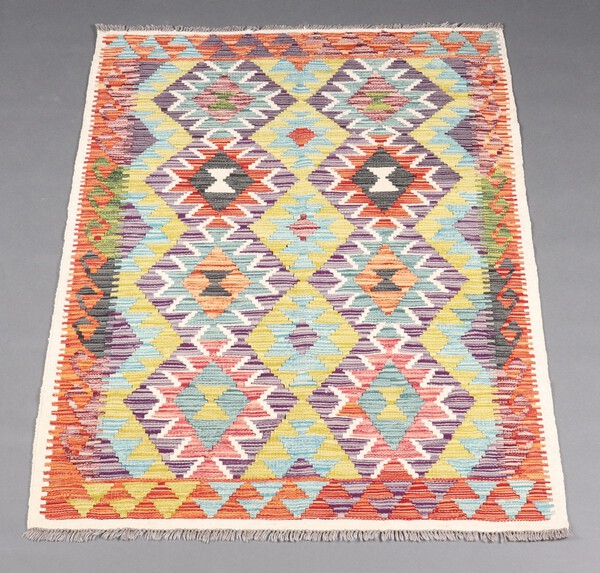 A green, white and turquoise ground Kilim rug 144cm x 104cm