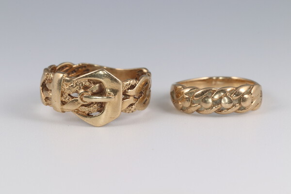 Lot 125 A gentleman's 9ct yellow gold buckle ring, a smaller twist ring sizes I 1/2 and O, 5.9 grams SOLD £160