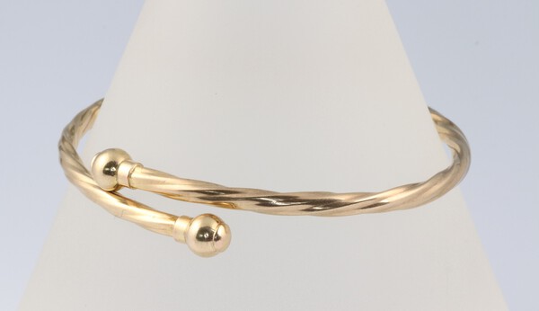 A yellow gold testing as 9ct hollow bangle, 4.2 grams