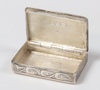 Lot 141 A Victorian rectangular engraved silver vesta box Birmingham 1899, makers mark FM, 1cm x 4cm x 2.5cm, 17 grams £30-40