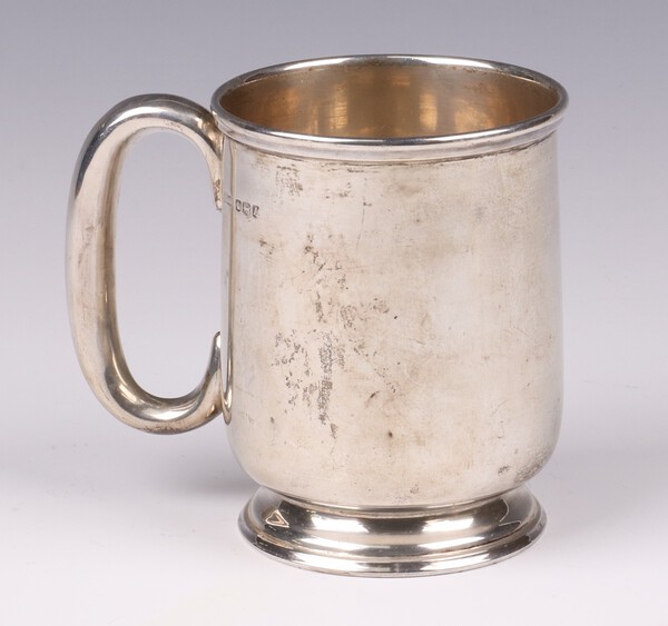 Lot 196 A silver christening tankard, Sheffield 1943 by James Dixon & Sons, the base engraved TF From NJ and SL, 168 grams SOLD £140