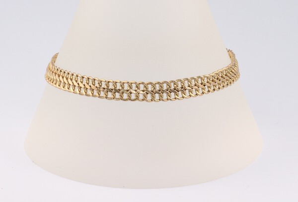 A 9ct yellow gold double curb flat link bracelet, 19cm, 3.4 grams
