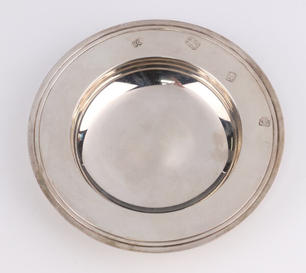 Lot 230 A silver Armada dish with engraved inscription, London 1989, 11cm, maker Comyns, 94 grams SOLD £55
