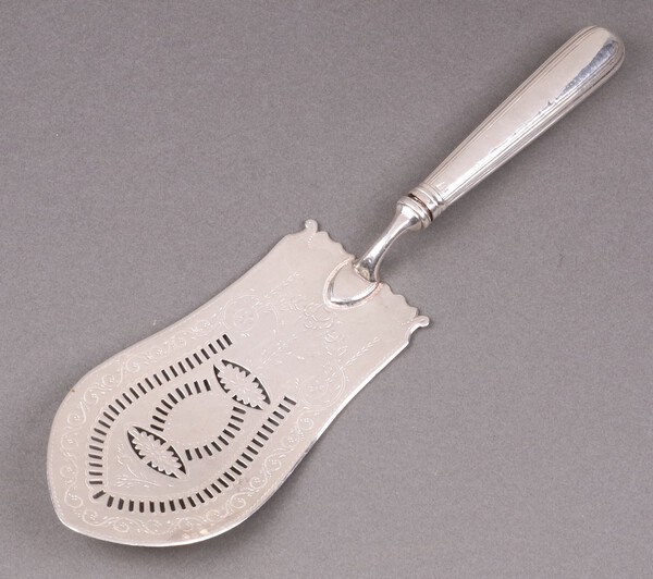 Lot 269 A Georgian pierced silver fish slice London 1826 by Thomas Daniell, gross weight including weighted handle 155g £80-120