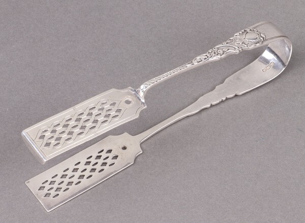 Lot 270 A pair of Victorian pierced silver asparagus tongs London 1899 by Josiah Williams & Co., 138g £80-100
