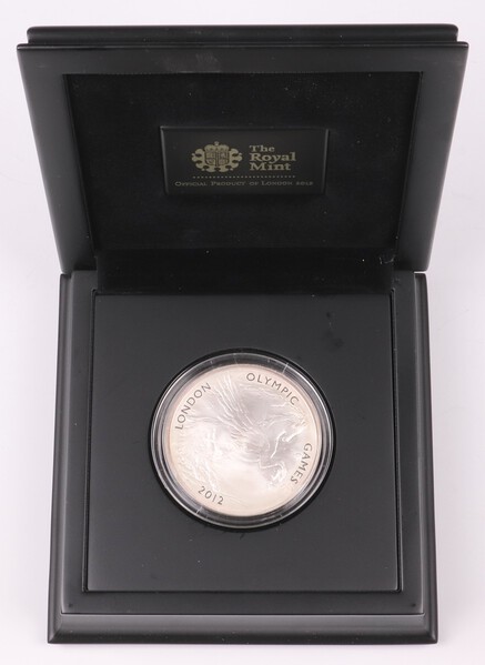 An Elizabeth II 999 silver proof 10 pound coin 2012 'The official London 2012 5oz coin', 5 oz, mint sealed, contained in fitted presentation case with COA.