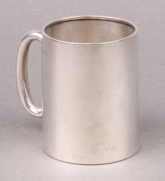 A silver christening tankard, Birmingham 1922, engraved PSB, marks rubbed 79g