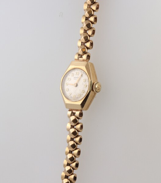 A lady's Vertex Revue wristwatch contained in a 9ct gold case, the movement marked Swiss Vertex 85 Revue, the case no.52953 970363, 13.3 grams excluding movement but including glass