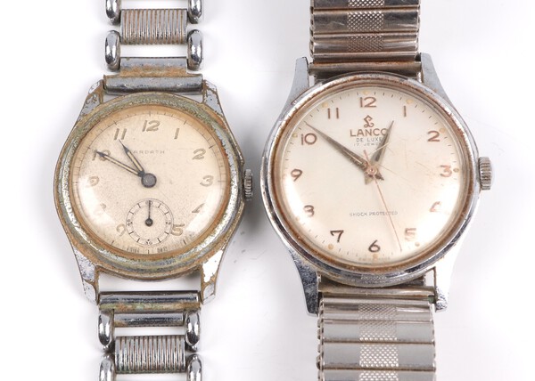 Lot 362 A gentleman's vintage Lanco Deluxe wristwatch with sweep second hand, contained in a chrome case (currently running) together with a gentleman's Ardath wristwatch with subsidiary second hand contained in a chrome case (some corrosion) £40-50
