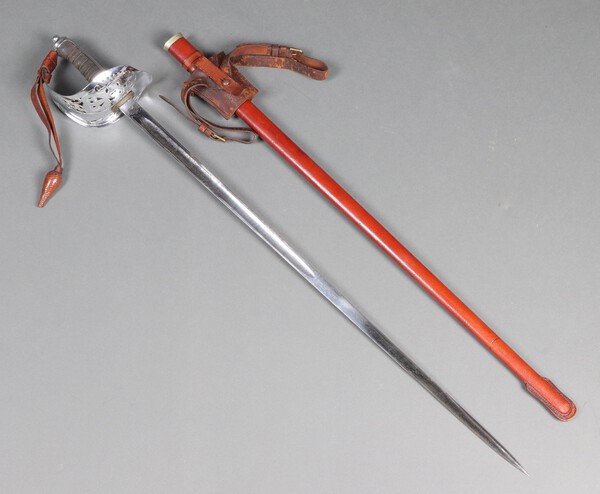 C Boyton & Sons, a George VI Royal Engineers Officer's sword with etched blade no.3013 and marked Prove, complete with dress knot, leather scabbard and Sam Browne belt