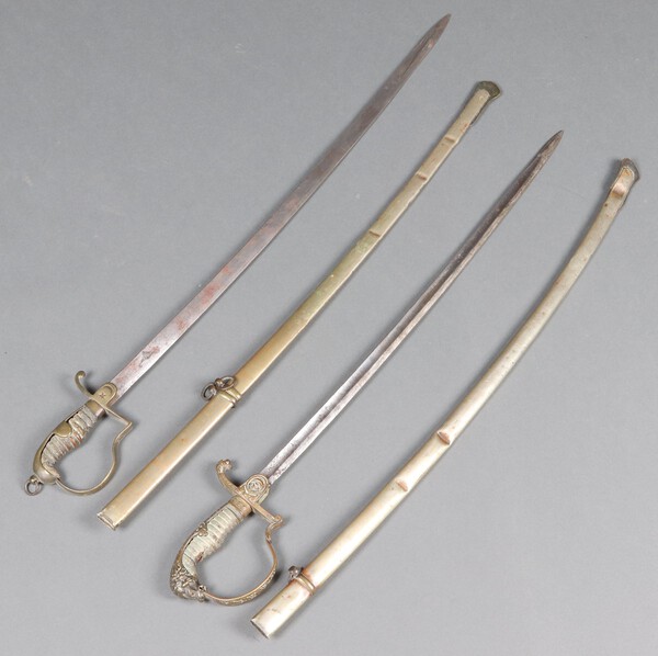 There is light rust to both swords, 1 has shagreen missing from the grip, both have 2 dents to the scabbards