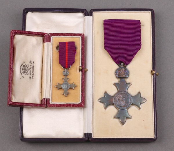 Lot 484 Officer of The Most Excellent Order of The British Empire, 1st type civil breast badge boxed, together with a ditto miniature Military Division SOLD £90