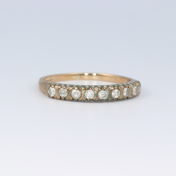 A 9ct yellow gold and paste set half eternity ring size J, 1.2 grams