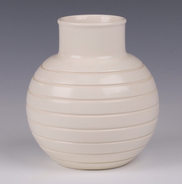 Lot 604 Keith Murray for Wedgwood, a white glazed vase the base marked KM Wedgwood Made in England 13cm £50-75