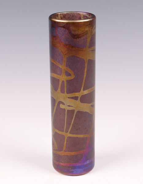 A John Dichfield purple and gold Art Glass vase 17cm, the base signed