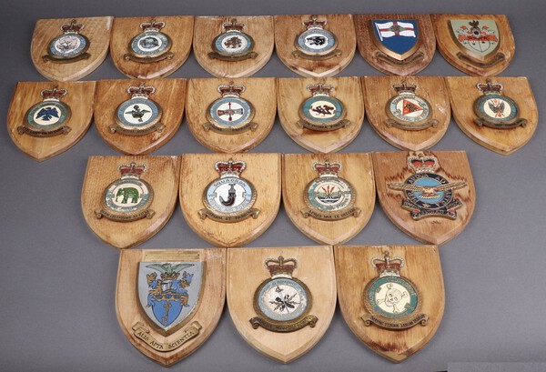 Nineteen various Royal Air Force painted wooden squadron plaques