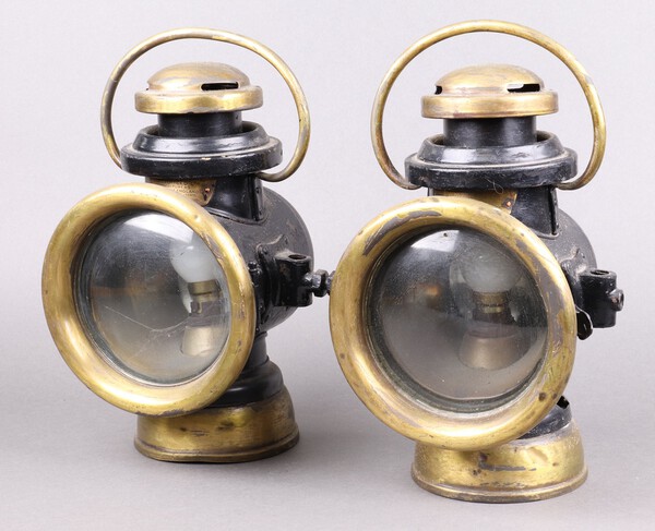 Lot 663 A pair of J and R Oldfield Ltd. Type no.44 car lamps, converted to electricity, marked Sentinel Shrewsbury £50-75