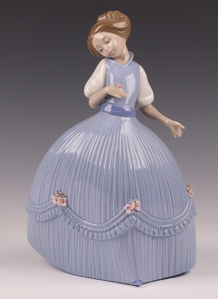 A Lladro figure of a standing lady holding a rose, the base marked 10M, 24cm