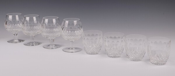Lot 685 Four Waterford Crystal Colleen pattern brandy balloon glasses together with 4 ditto tumblers, boxed £80-120