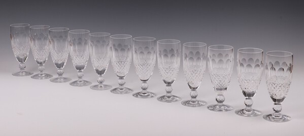 Twelve Waterford Crystal Colleen pattern champagne flute glasses 15cm