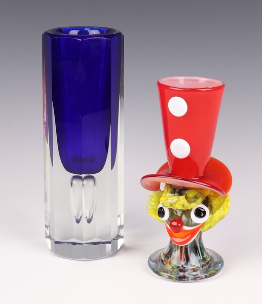 A Murano glass vase in the form of a clown 20cm together with a Studio Glass octagonal vase 25cm