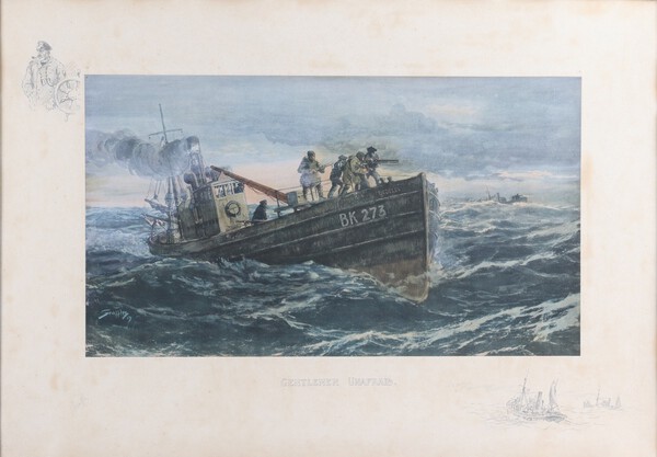 Lot 784 **Snaffles (Charles Johnson Payne) (British, 1884-1967), "Gentlemen Unafraid", early 20th century colour print, signed in pencil, 47cm x 67cm, within an ebonized frame **Please Note - Artists Resale Rights may be payable on this lot £100-150