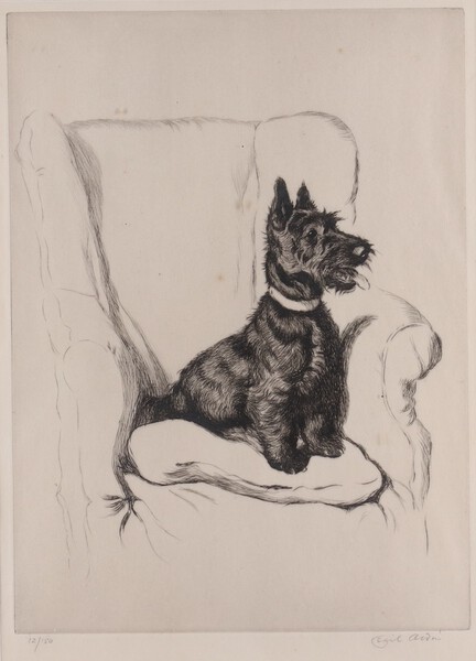 Lot 834 Cecil Charles Aldin (English 1870-1935) etching signed in pencil, seated Highland Terrier no.12/150 31cm x 22cm SOLD £100