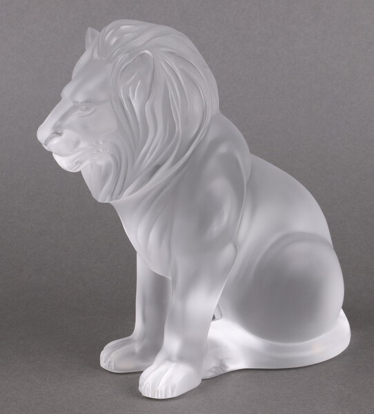 Lot 851 Lalique, a glass figure of a seated lion "Bamara" 21cm, the base marked Lalique France and with label Made in France £300-500