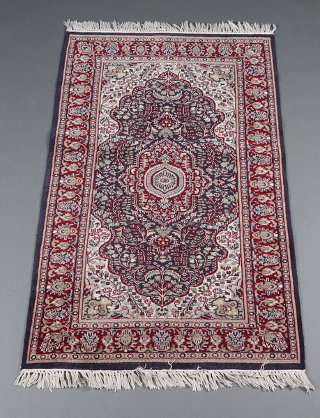Lot 851 A blue, brown and white ground North West Persian floral pattern rug with central medallion within a multi row border 156cm x 94cm £50-75