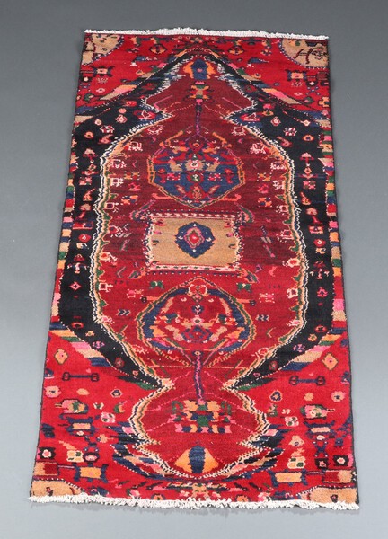 Lot 922 A red, blue and tan ground Afghan rug with 2 stylised medallions to the centre 170cm x 81cm SOLD £30