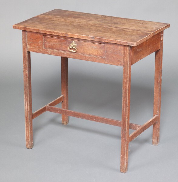 Lot 984 An 18th Century oak side table, fitted a frieze drawer, raised on square supports with H framed stretcher 76cm h x 48cm SOLD £30